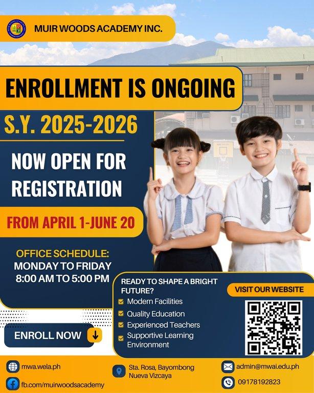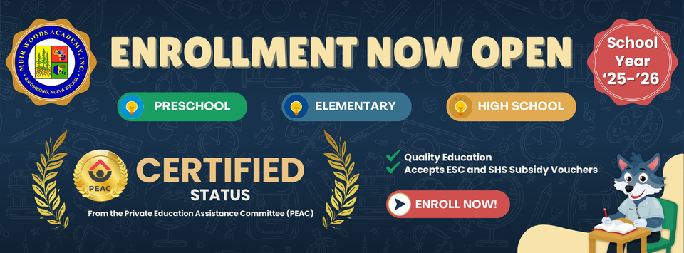 "Welcome to MUIR WOODS ACADEMY SCHOOL– the cradle of learning where ideas bloom and dreams are started. It is where the learners’ creativity, critical thinking and character are honored through state –of –the art facilities, digitally assisted instruction, and highly qualified dedicated faculty members. These could transform the learners into responsible citizens of our country ready to face the competitive world of Arts, Math, Science, and Technology."
